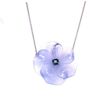 Australian Blue Sapphire and Blue Chalcedony Flower Pendant Necklace