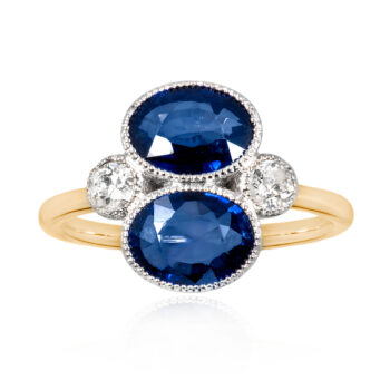 Vintage Sapphire And Diamond Twin East West Ring, Bezel Set Milegrain Finish Austrian Hallmark, sapphires total 2.60ct, old cut diamonds total 0.34ct I SI1