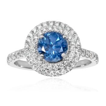Ceylon Sapphire and Diamond Halo Ring