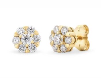 Crafted in 9ct white gold, these Catanach’s signature Diamond cluster earrings feature a central round brilliant aquamarine encircled by a cluster of bright white diamonds.