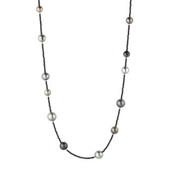 This elegant necklace features faceted aquamarine and morganite beads, complemented by the striking presence of a 25mm baroque Broome pearl. Finished with a gold barrel clasp, it blends colour, scale, and texture in a design that is both distinctive and refined.